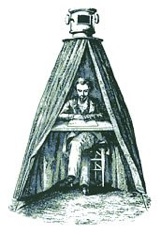 Chevalier’s drawing of a tent camera obscura showing the meniscus prism